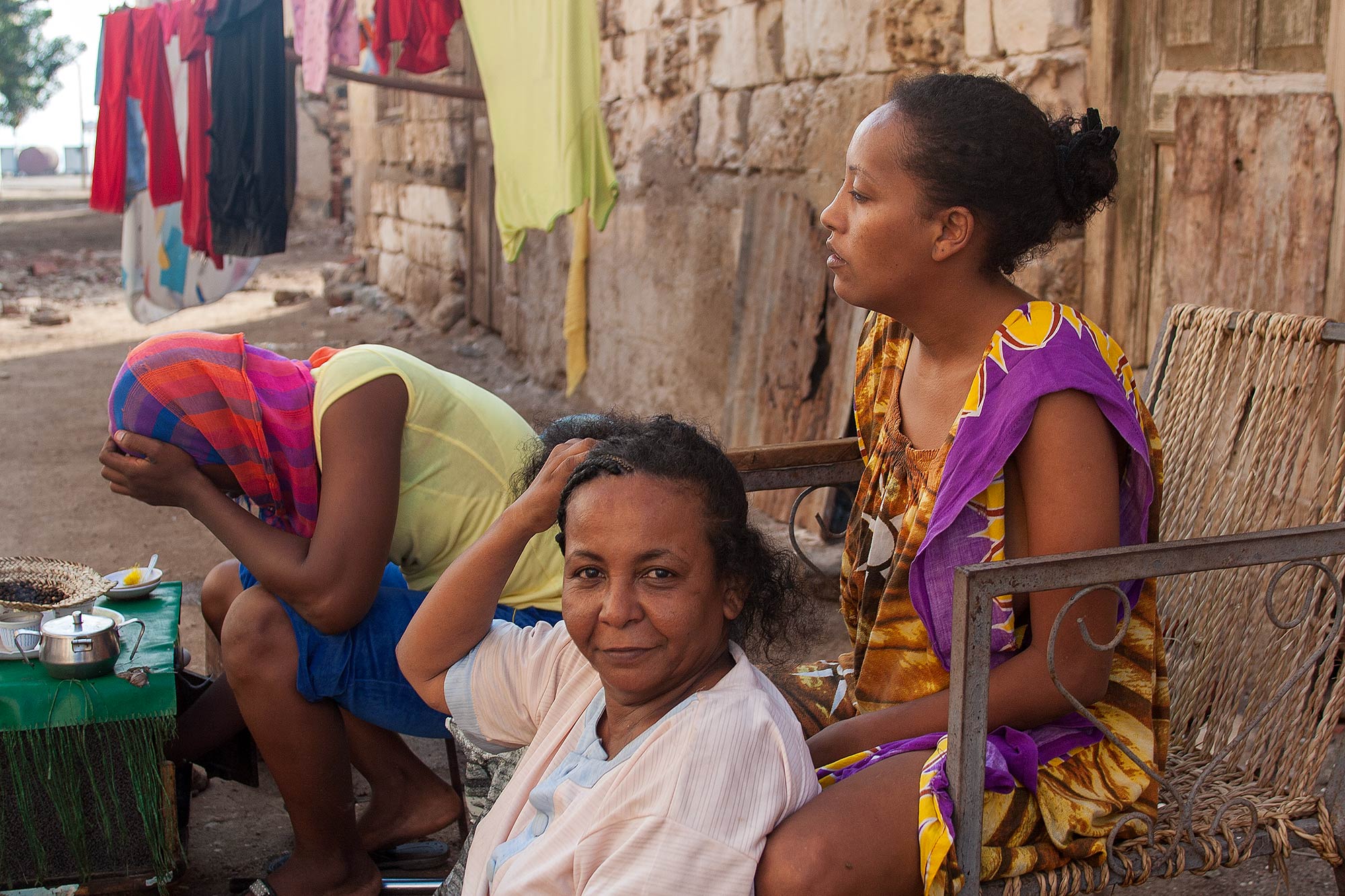 One afternoon, we had an interesting encounter with two young girls and their guardian. Beautifully dressed, they spoke good English and explained that they were refugees from Ethiopia. They were obliging when I asked if I could take their portraits.