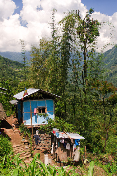 Down, down we descended, knees jarring and skidding and sliding, but all the while taking in ridiculously spectacular views of the foothills beneath Kanchenjunga. Typically of all the days of rain and cloud, we chose the hottest day in Sikkim in months to do our trek. Not to worry, the man in the information office said it’d only take three hours…