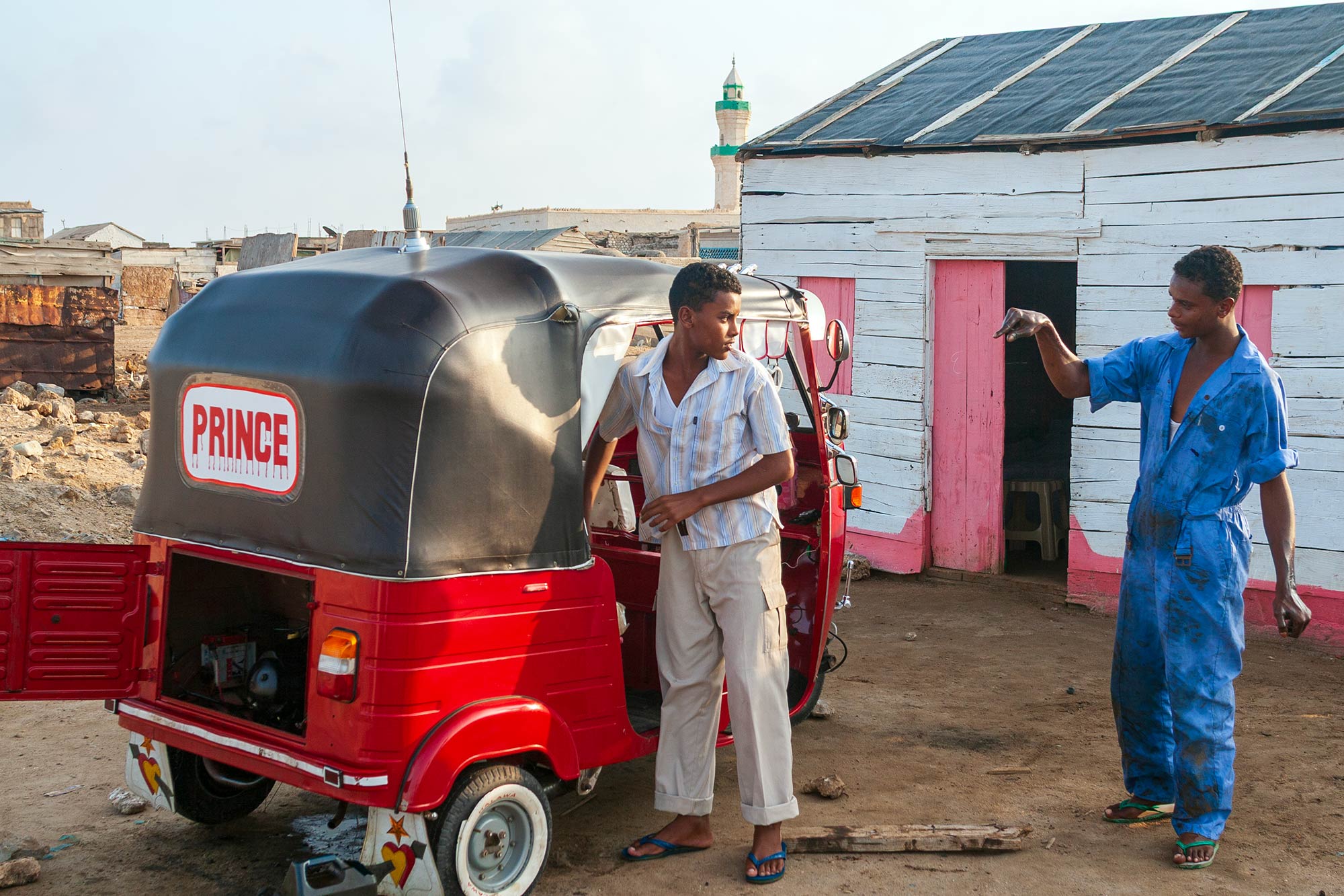 Along the dusty road from the anchorage and old city lies the market, and behind the market, the residential area. The market is surrounded by wooden buildings that look more at home in The House of Fun, such is the angle at which they sit. It is the residential area, however, that really shocks. More buildings made of any scrap of cardboard, metal or wood have been cobbled together to provide some kind of shelter from the sun.