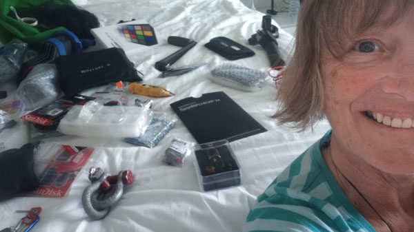From a windlass last year (which Liz had to dismantle and put into two suitcases for it to fit within airline maximum baggage regulations) to clips, snaps, shackles and winch handles, we’ve been flying back and forth across the globe carrying boatloads of equipment.